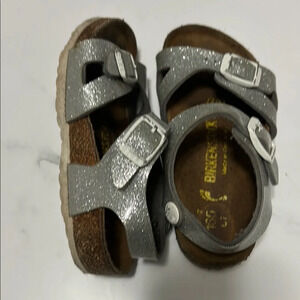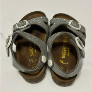 Stylish and comfortable, these Birkenstock kids sandals in silver are perfect for everyday wear. Featuring adjustable straps for a secure fit.