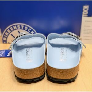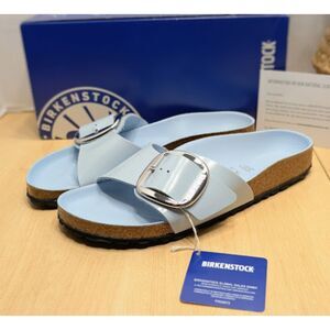 Birkenstock Madrid Big Buckle Baby Blue Natural Leather Patent Sandals EU 40 NIB