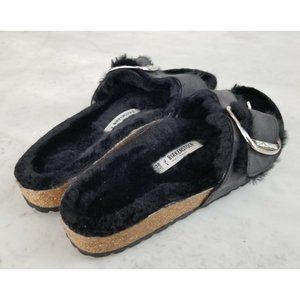Birkenstock Madrid Big Buckle Black Oiled Leather Shearling Size 38 Narrow