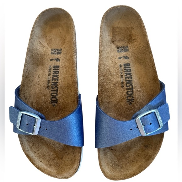 Birkenstock Madrid Icy Metallic Azure Blue Birko-Flor Sandals Sz 38