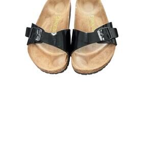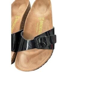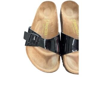 Birkenstock Madrid Sandals Black Patent Leather Casual Leather Cork Heel Size 37