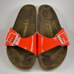 Birkenstock Madrid Sandals Womens Size 39 US 8-8.5 Narrow Orange Patent Leather