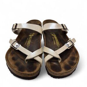 Birkenstock Maya Birko Flor Sandals Women's Pearl Tone Strap Boho Toe Ring.