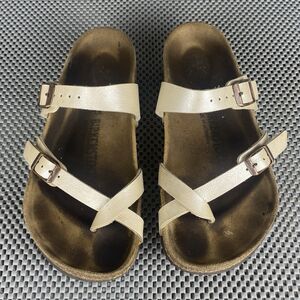 Birkenstock Mayari Adult Sandals 37 L6 M4 Cream Leather Buckle Made In Germany