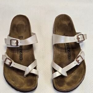 Birkenstock Mayari Birko-Flor Sandals Womens 8-8.5 White Strap Mens 6-6.5 EU 39