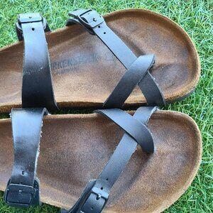 Birkenstock Mayari Black Leather Sandals Women’s 37 ( 6.5-7 ) | Strappy Toe Loop