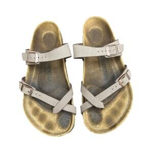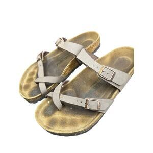 Birkenstock Mayari Brown Birkibuc toe-loop slide sandals 40 L9 M7 Birk flats