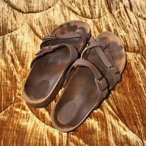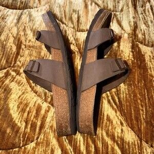 Birkenstock Mayari Cross Strap Sandal In Brown Size 42. Pretty worn heels but still lots of life left. Please see photos, thank you!