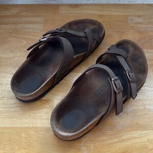 Birkenstock Mayari Sandals Size 38 / 7 - 7.5 Dark Brown Leather Women’s GUC