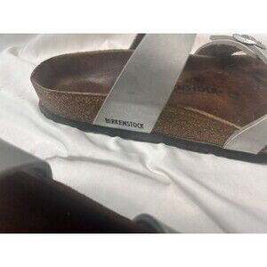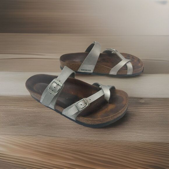 Birkenstock Mayari Sandals Womens Size 39 8.5 Metallic Silver Leather Cork