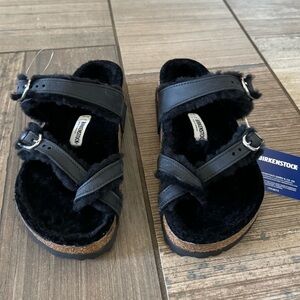 Birkenstock Mayari Shearling Natural Leather Oiled sandals size 6