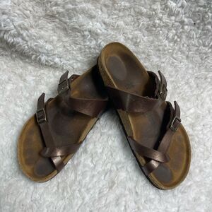 Birkenstock Mayari oiled rustic brown toe loop sandals ,adjustable strap…