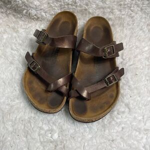 Birkenstock Mayari oiled rustic brown toe loop sandals ,adjustable straps SZ39 pre owned in good used condition signs of wear on the inner soles see all pictures any questions please message.