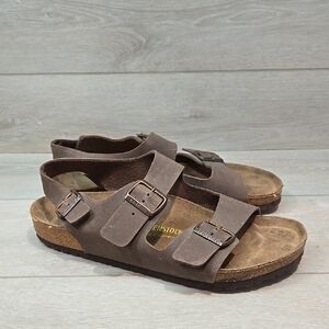 Birkenstock Mens Milano Leather Brown Sandals Shoes Slide Sz 45/12 Regular