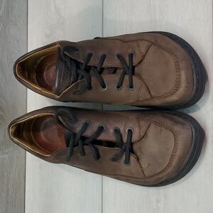 Leather Birkenstock lace-up shoes are classy street casual at its finest, somewhere between a sneaker and a dress shoe.