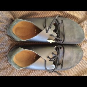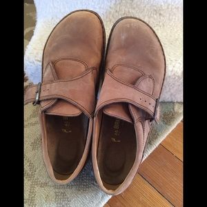 1 pair of Size 13 men’s Birks!! camel colored buckle shoes! NEVER WORN. THE BLACK ONES WITH TIES ARE SOLD!!!!!