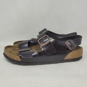 Birkenstock Milano Sandals Mens EU42 US9.5 Brown Leather Soft Footbed Buckles