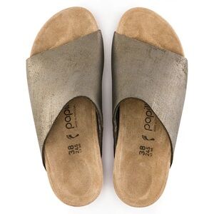 Birkenstock Namica Suede Leather Washed Metallic Stone Gold