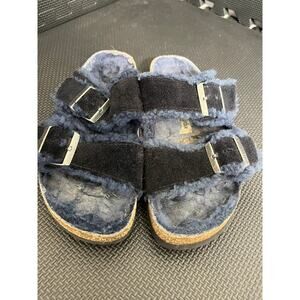 Birkenstock Navy Blue Arizona Shearling Slide Sandal Comfort Casual Boho
