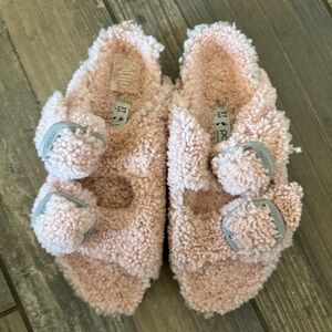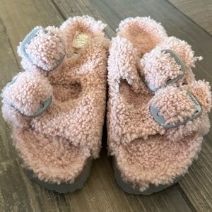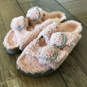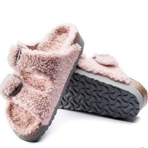 Birkenstock Papillio Arizona Big Buckle Shearling sandals size 6. Gently used and in good condition. COLOR: Teddy Crystal Rose. The iconic Arizona two strap sandal, now available in all over teddy shearling. Extra cozy, extra comfortable with amplified big buckles for a bold style.