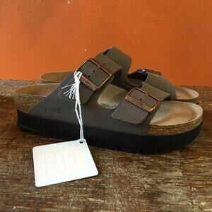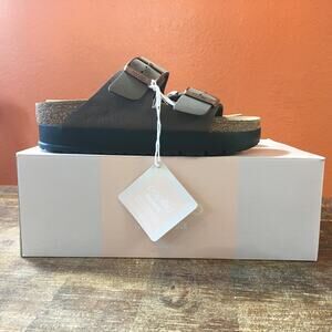 NEW in box Papillio By Birkenstock Arizona Pap Flex Platform sandal in color Mocca. Womens size EU 37, US 6. Narrow Fit. Buckle adjustable. UPC: 192761937500