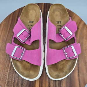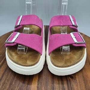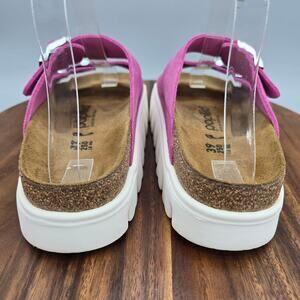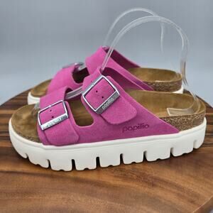Birkenstock Papillio Arizona Sandals Womens 8 39 Pink Suede Leather Chunky Slide