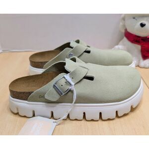 Birkenstock Papillio Boston Chunky Faded Lime Suede Leather Platform Clogs NWT