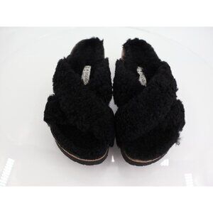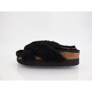 -Birkenstock Papillio Daytona Shearling Black Sandals Size 38 7 Platform Slide