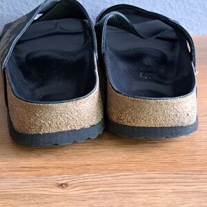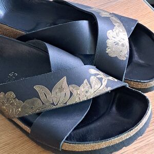 Birkenstock Papillio Daytona Womens 42 11 Narrow Black Gold Cross Strap Sandal