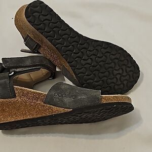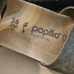 Birkenstock Papillio Eve Cork Wedge Heel Sandal Grey Suede Leather Sz 7