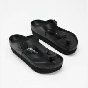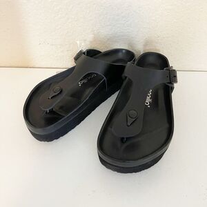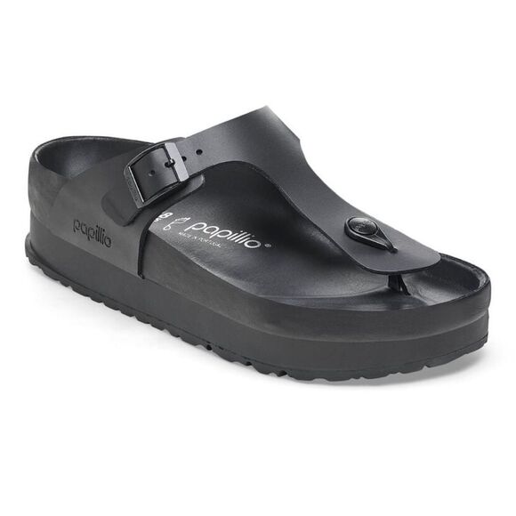Birkenstock Papillio Gizeh Flex Black Leather Platform Sandals Size 9 NWT