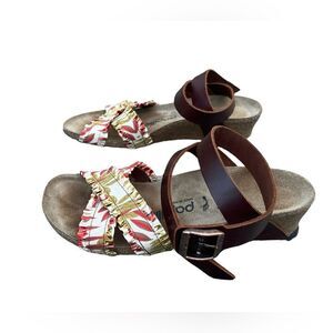 Birkenstock Papillio Lola Flower Frill Brown Ankle Strap Sandals Women's Size 6