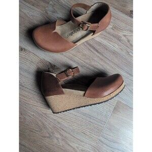 Birkenstock Papillio Mary Ring Buckle Cognac Leather clogs Womens 7-7.5 EU 38