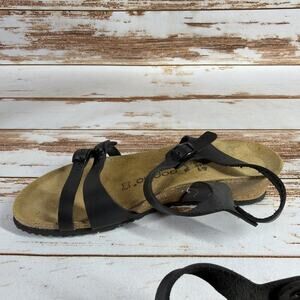 Used with light wear. Footbed clean, tread shows mild use. Straps and buckles intact. Stored in a smoke-free environment.