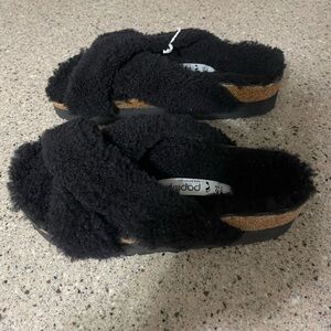 Birkenstock Papillo Daytona Shearling Slide Sandals in Black Size 36 (US5-5.5)