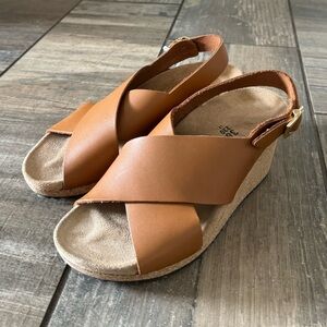 Birkenstock Samira Leather sandals size 36 (5). New with tag, no box. Store model. Mark from sticker. COLOR:Ginger Brown. The Samira, a crossed-strap sandal with sophisticated style. Featuring a heel strap for additional support along with a lightweight footbed that promotes proper pressure distribution and elevates BIRKENSTOCK to new heights in comfort and style. The upper is made from high-quality, soft natural leather.