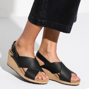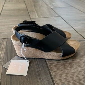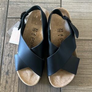 Birkenstock Samira Natural Leather sandals size 6. New with tag, no box. Store model. Slight sticker residue as seen in photo. The Samira crossed-strap sandal from Papillio features a heel strap and sophisticated details: the heel lengthens the leg while the stylish band made from skin-friendly material pampers any foot. The delicate circular buckles are an elegant eye-catcher. The upper is made from high-quality, soft natural leather.