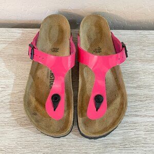 Birkenstock Sandals 36 Gizeh Birko-Flor Pink Patent Fuchsia Tulip