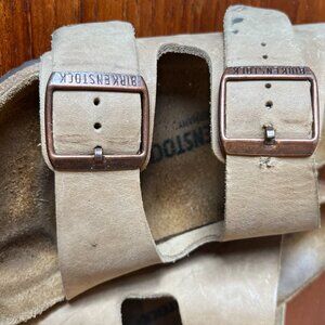 Very lightly used, worn maybe like 10 times? they are too loose for me thus the extra hole I added in them.