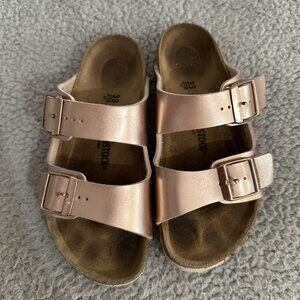 Birkenstock Sandals Girls Size EU 33 Rose Gold Arizona Double Strap Cork Footbed