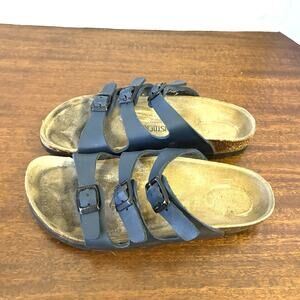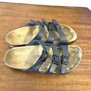 Birkenstock Sandals Womens Sz6 Florida Three Strap Adult 37 Navy Blue Cork Beach