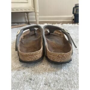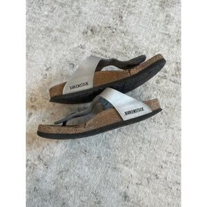 Birkenstock Size 39 Gizeh Birko Flor Sandals Silver Leather Buckle Preloved