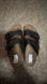 I bought them at Nordstrom Rack and wore them a few times but then realized that I liked a different style better. There are some feet prints on the cork and some dirt on the bottom that I couldnt get all the way out (see pictures) but there are in good used condition otherwise.