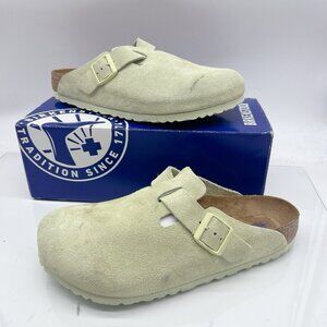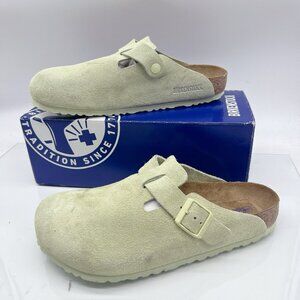 Birkenstock Soft Footbed Boston Clogs Faded Lime Suede EU 41 Womens US 10-10.5 R