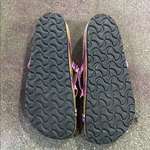 Stylish Tatami sandals with a strappy design. Features a unique purple pattern. Comfortable footbed for all-day wear.