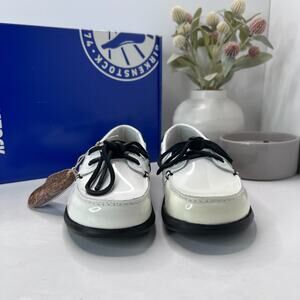 New with defect - New with defect - Some areas on the patent leather have yellowing to them.