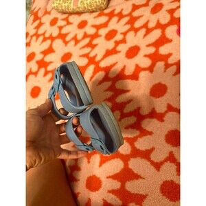 Size 33, 2-2.5 toddler shoes blue worn signs of wear fair condition priced according to condition.