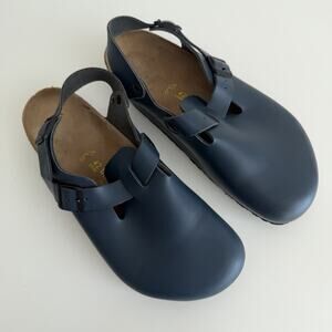 Birkenstock Tokio Super Grip Sandals 42 Navy Blue Clog Leather Slip On Mens 9