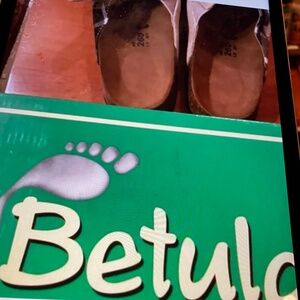 Truly unique Birkinstocks brand new. Never worn still in box. The sandal is a creamy beige with black and white plaid. Betula style size 9.