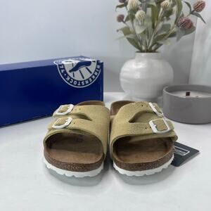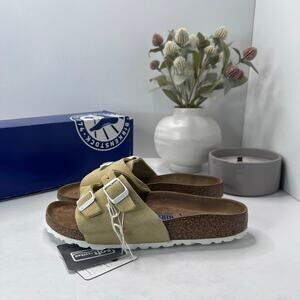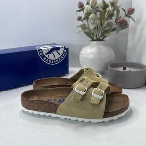 Birkenstock Vaduz Suede Slide Vanilla Soft Footbed Women 5 EU 36 NWB Narrow Fit